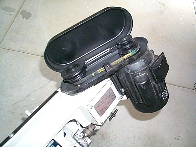 . Inside are two pulleys that turn...dahh how obvious. Did I mention that the blade goes round and round? It is quite easy to change a blade in minutes. This is the original blade, they seem to last and last . |