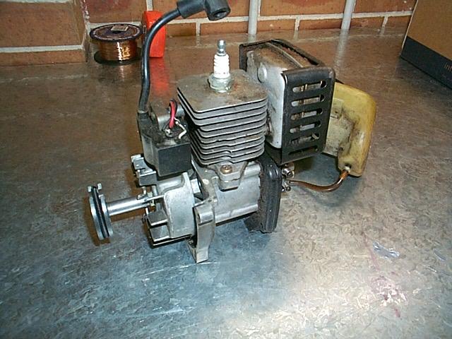 The engine. It needs a clean up but works fine. The thing sticking out on the left is the centrifugal clutch. |