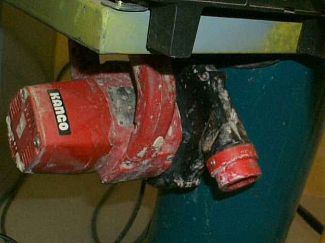 The welder is bolted to a frame which is welded to the original trolley. The blower unit is mounted below the welder. |